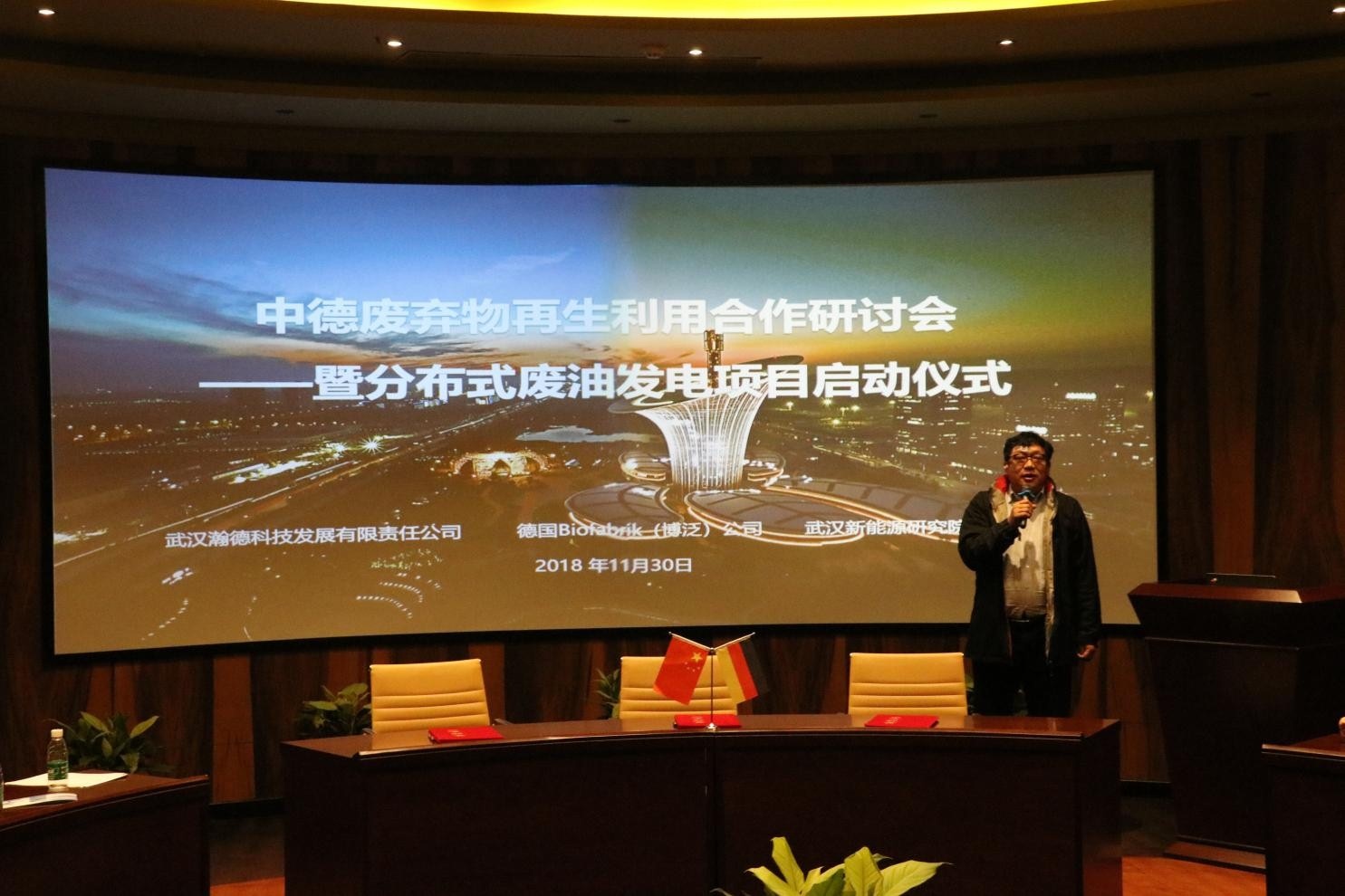中德均為實(shí)體經(jīng)濟(jì)大國和制造業(yè)大國,均將發(fā)展新能源、環(huán)保等戰(zhàn)略性新興產(chǎn)業(yè)作為未來政府工作重點(diǎn),綠色、低碳發(fā)展理念深入人心。近日,由德國Biofabrik(博泛)技術(shù)公司、武漢瀚德科技發(fā)展有限責(zé)任公司、武漢新能源研究院共同舉辦的“中德廢棄物再生利用合作研討會(huì)暨分布式廢油發(fā)電項(xiàng)目啟動(dòng)儀式”在新能源研究院召開。