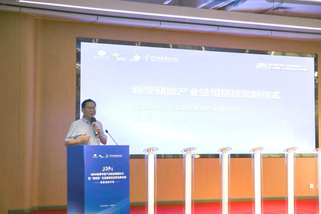 緊接著,活動進入了“新型儲能產(chǎn)業(yè)鏈組搭建倡議發(fā)起儀式”環(huán)節(jié)。在周弢等領導的共同見證下,華中科技大學電氣與電子工程學院教授、羿變電氣董事長康勇代表鏈長單位發(fā)起倡議。來自十家新型儲能企業(yè)的代表齊聚一堂,共同參與了武漢新能源研究院新型儲能產(chǎn)業(yè)鏈組的啟動儀式。此舉旨在推動儲能產(chǎn)業(yè)鏈的發(fā)展和完善,促進企業(yè)間的合作與創(chuàng)新。